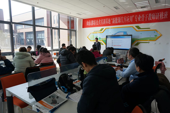 教师们到北汽福田山东多功能汽车厂进行了车身焊接、车身涂装、整车装配的岗位实践,到山东广潍集团进行了售后接待、机电维修等岗位实践,到潍坊市公共实训基地进行了新能源汽车技术培训。先后进行了新能源汽车典型结构与关键技术、安全防护措施、动力电池与管理系统、职教云立方专业教学系统、云立方教学平台及课程的应用与操练、虚拟教具的应用与操练、整车智能实训系统的应用与操练等项目的学习。