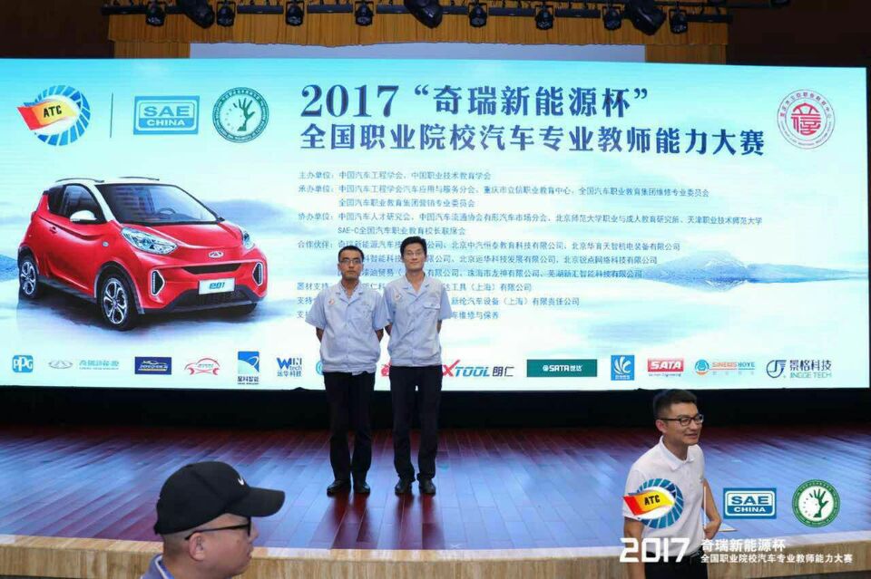 由中国汽车工程学会、中国职业技术教育学会主办的“2017‘奇瑞新能源杯’全国职业院校汽车专业教师能力大赛”2017年9月21日在重庆市立信职业教育中心落下帷幕,代表公司参赛的马福胜和王登强两位教师在本次大赛的高职组教师汽车检修赛项中荣获团体二等奖。