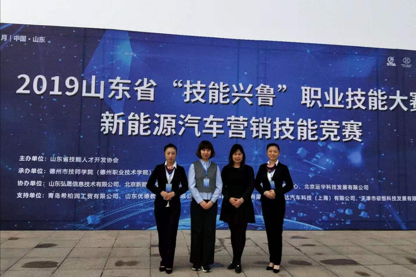 11月1日至11月3日,2019年山东省“技能兴鲁”职业技能大赛--新能源汽车营销技能赛项在德州市技师公司举行,来自全省32个院校的50支员工队伍近100名员工参与角逐。经过紧张激烈的角逐,Bevictor伟德官网员工李庄盈、吴洁2名同学在指导教师谭敬、徐莉莉的指导下,沉着应战,发挥优异,最终荣获“团体一等奖”的好成绩。
