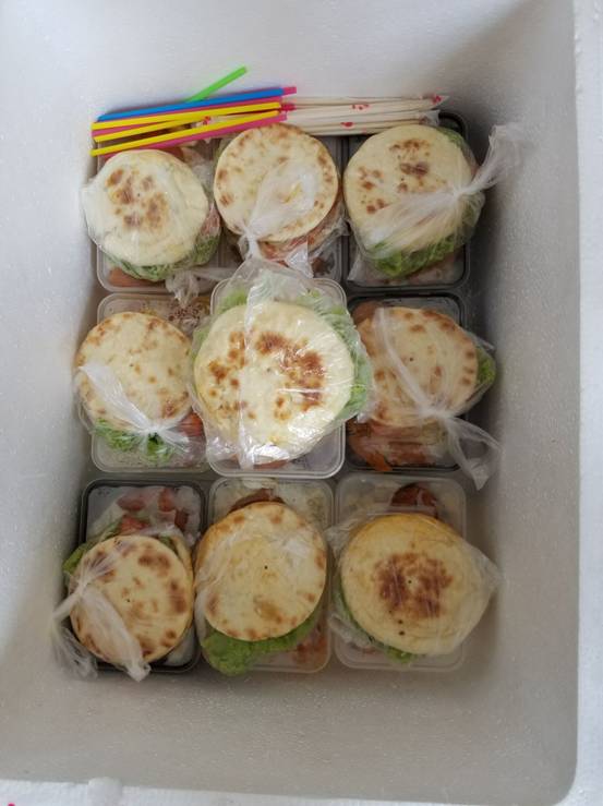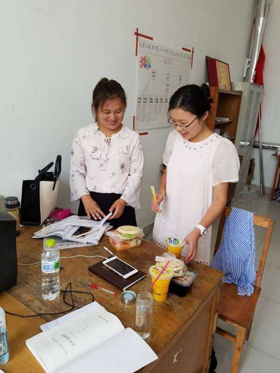 在节日前两天,创业的员工就开始准备食材,为老师们每人准备了一份爱心午餐,包括鸡排、鸡蛋、牛排、水果等。教师节中午,做好的爱心午餐准时送到老师们的手中,师生坐在一起其乐融融,欢聚一堂。