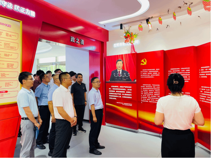 活动中,党员们在讲解员引导下,依次参观了“政之清”“廉之洁”“罪之深”“谋之要”四大主题展区。展厅通过图文展板、多媒体影像、典型案例深度剖析等多元形式,生动展现党的十八大以来党风廉政建设和反腐败斗争的历史性成就。以违纪违法党员干部的堕落轨迹与惨痛教训为党员敲响警钟,在“罪之深”展区,触目惊心的反面案例让党员们深刻感悟到“贪廉一念间,荣辱两重天”的现实警示。在廉政教育基地宣誓厅,面对鲜红党旗,全体党员高举右拳庄严宣誓:“我志愿加入中国共产党……”铿锵誓言在展厅内久久回荡,再次点燃党员们的初心使命,凝聚起砥砺奋进的精神力量。
