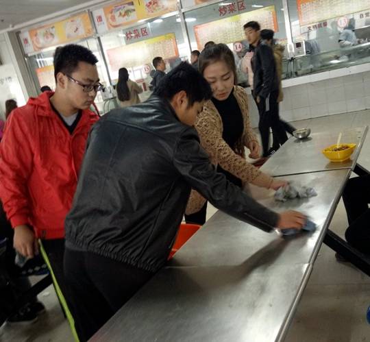 本次活动后同学们餐后清理垃圾的自觉性得到了明显提高,他们明白了一个道理:与其破坏完了再去清理,不如吃的时候多加小心,痰纸一飞间,风度尽逝矣。(冀美红供稿)
