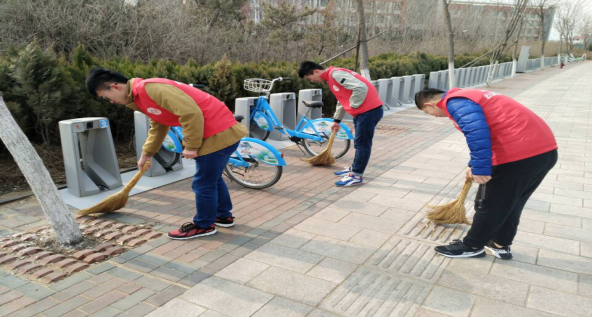 上午十点,志愿者们自备清洁工具,在承泽四号楼门口集合。在员工干部地安排下,活动迅速有序地展开。全体人员共分为三个小组,分别打扫校门口,餐厅周围以及公共自行车附近的卫生。扫垃圾,捡烟头,擦拭公共自行车,寒冷的天气没有阻挡住志愿者们奉献的脚步,志愿者们的行为感动了来往路过的同学们,他们也纷纷加入到清扫队伍中。