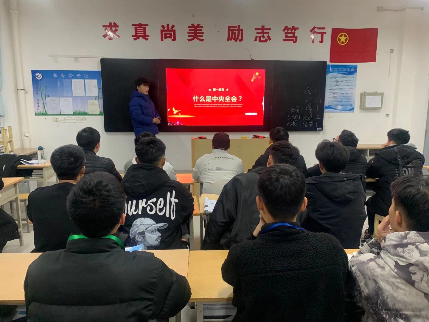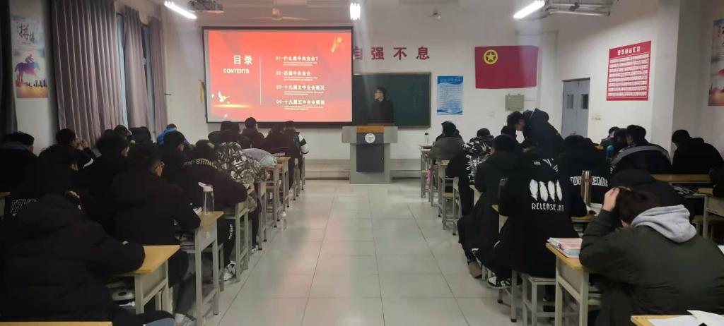 党的十九届五中全会是在决胜全面建成小康社会、开启全面建设社会主义现代化国家新征程的关键时刻召开的重要会议。全会充分肯定党的十九届四中全会以来中央政治局的工作,高度评价决胜全面建成小康社会取得的决定性成就。团课上,各班团支书就十九届五中全会重点内容解读、全会公报重要关键词及如何结合大会精神做时代新青年等三个方面跟团员青年一起学习领悟,带领团员青年通过观看视频、参与答题等形式学习了会议精神。在团课过程中,团员青年精神状态饱满,团课氛围良好。