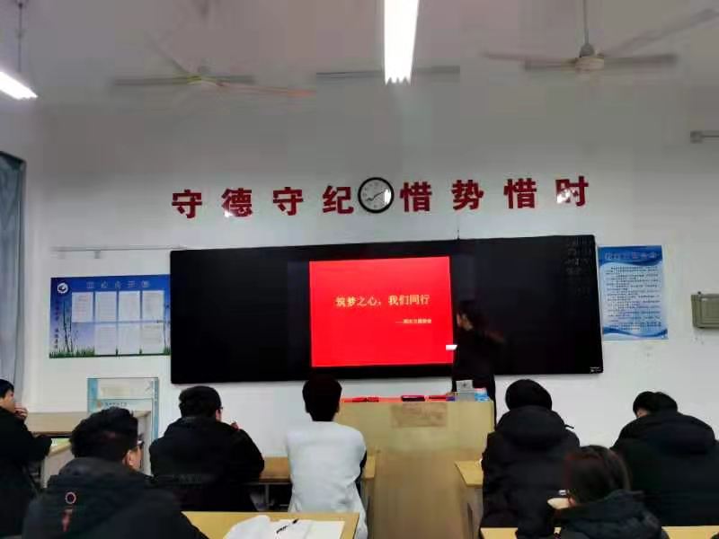 12月22日,以各团支部为单位举行“筑梦之心 我们同行”期末主题团课,各班长就本学期班级主要工作以及同学们各方面的表现情况进行了剖析,分析问题并鼓励同学努力争创优秀班集体;并针对临近期末考试的实际情况,号召班干部和学习成绩优异的同学带头成立帮扶小组,利用晚自习时间对同学们在专业学习、考试复习中遇到的问题进行辅导,带动同学们以认真、诚信的态度迎接考试。元旦放假前,各班就卫生区进行了大扫除。1月3日晚,公司开展期末考试考场集中整理检查活动,整齐的桌椅,整洁的卫生环境,都在诉说着,期末考试,我们准备好了。