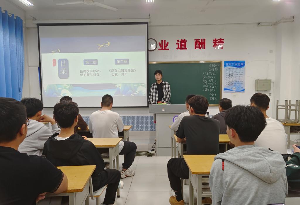此次班会以班级为单位开展。班会上,各班班长向同学们详细讲解了《反有组织犯罪法》的制定背景及基本内容,并通过实际案例解答了“如何预防有组织犯罪”和“遇到有组织犯罪怎么办”等方面问题,让同学们深刻认识到组织犯罪的危害。同时还围绕防止校园欺凌向同学们详细讲解了校园欺凌的常见类型、存在的原因以及所带来的负面影响,引导同学们正确地面对和防范校园欺凌。在班会中员工们积极思考,踊跃提问,现场学习氛围浓厚,气氛活跃,大家纷纷表示要提高法律意识和安全防范意识,主动检举揭发违法犯罪,用合法的方式去解决校园欺凌,争做尊法、学法、守法、用法的新时代青年。