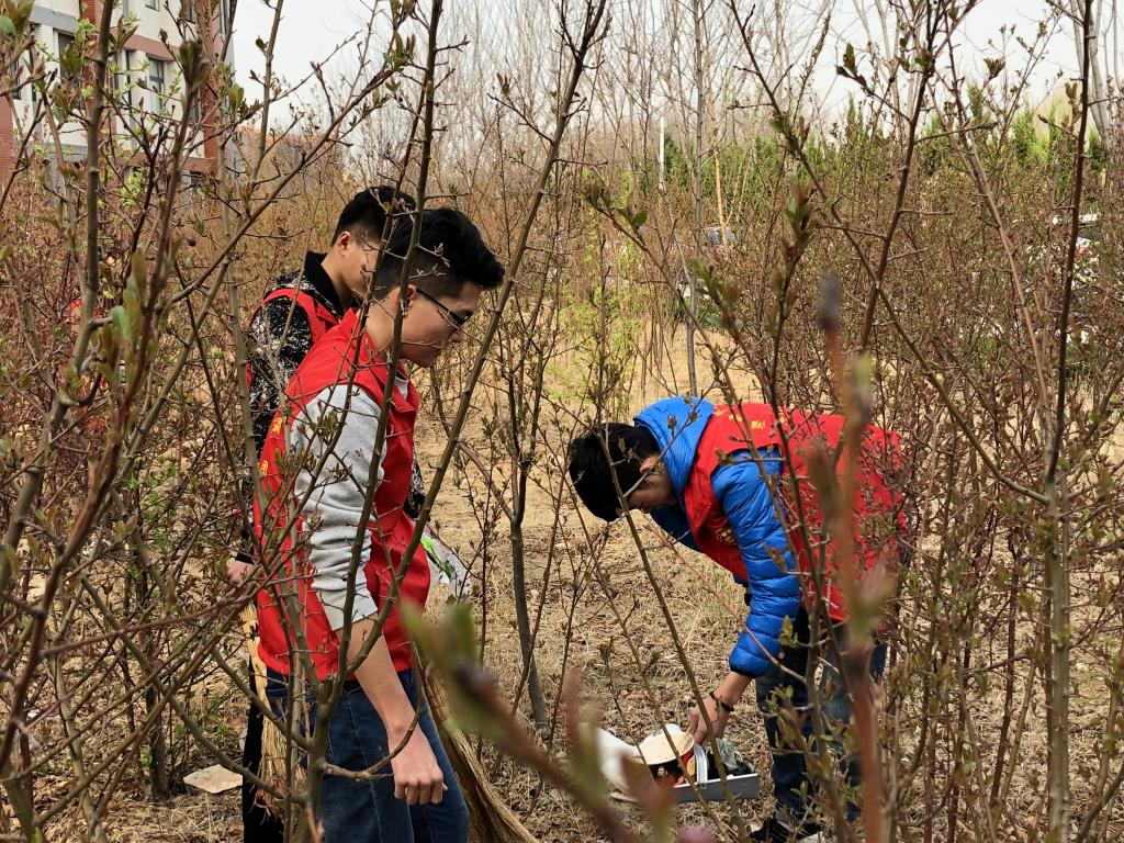 志愿者们手拿着垃圾袋,在校园里捡拾草丛里难以清理内的垃圾,不放过一个塑料袋,一张废纸,草丛里、道路上、花坛边的弃物被拾捡得干干净净,“洗脸”后的校园焕然一新。