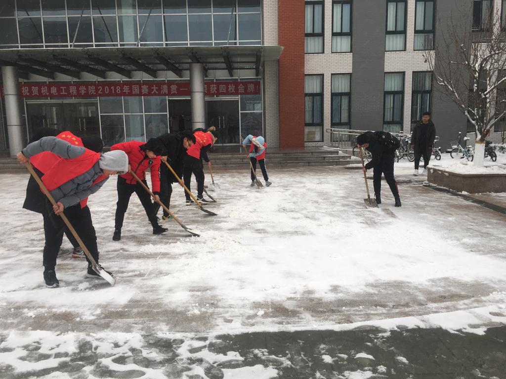 凛冽的寒风不能阻挡同学们高涨的热情,同学们挥舞着除雪工具,不畏严寒,干劲十足,教学楼周边区域很快被清扫干净,通过这次志愿服务活动,为师生营造了出行方便的环境,保障了师生的出行安全。在这次活动中,志愿者们弘扬了奉献、友爱、互助的精神,用自己的行动谱写了爱的篇章。(张斌供稿)