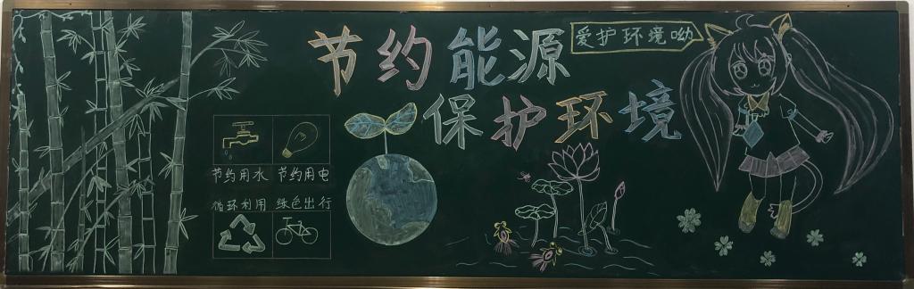 在众多的黑板报作品中,有的班级以"嫩绿芽"作为灯芯柱,传递出能源就是人类希望的绿色理念;有的班级强调节约能源的重要性;有的班级则倡导众人一起践行"地球一小时"活动,让地球母亲休息一会……