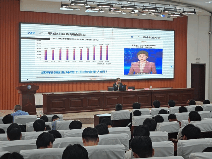 讲座上,王晓伟结合当下就业形势,阐述了职业规划对员工个人长远发展的意义,结合实际案例,强调了方向和目标的重要性。他围绕“自我认知深化、职业环境研判、目标体系构建、执行策略优化”四大关键环节,详细阐释了如何进行合理的职业规划。王晓伟鼓励员工在校期间要积极参与创新创业比赛、职业规划比赛等,不断提升综合素质,逐步树立正确的成长成才观和择业就业观。