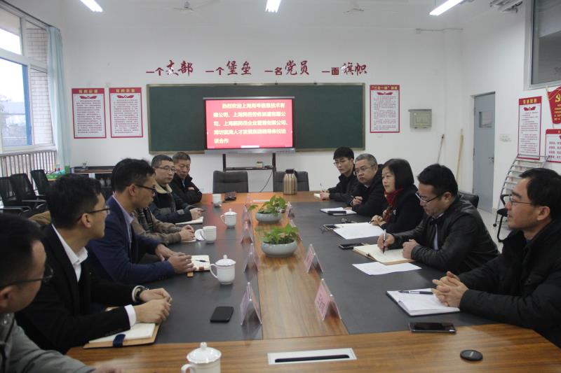 上海海岑信息技术有限公司总经理倪金梅一行在潍坊滨海人才发展集团副总经理马彬的陪同下,到公司开展校企合作洽谈工作,Bevictor伟德官网经理杜洪香、党总支部书记杨勇及相关领导、老师参加了座谈会。