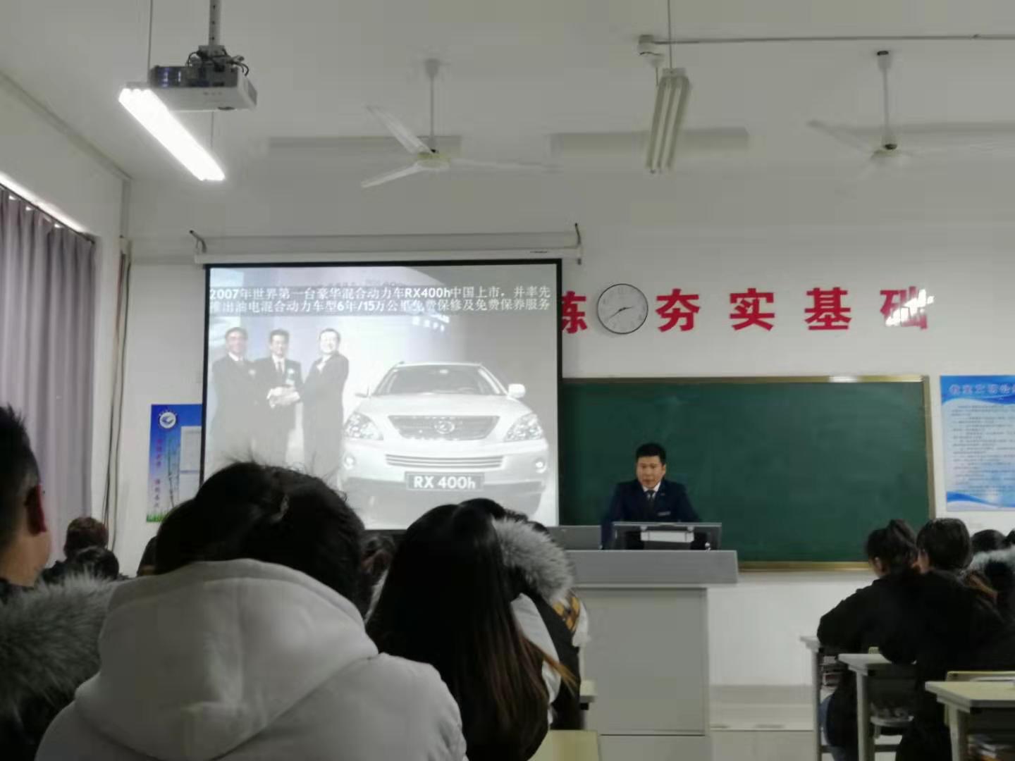 本次活动邀请的企业技术骨干是潍坊博瑞雷克萨斯汽车销售服务有限公司的金牌内训师张明明。张明明长期从事潍坊博瑞新员工的入职培训及产品培训工作。本次活动他从“传承”“杰作”“十年”“未来”四个方面介绍了雷克萨斯的品牌发展历史,并结合企业的岗位需求和新员工应具备的职业素养对同学们提出了学习指导和建议。活动结束后,同学们纷纷表示收获满满并更加明确了未来的努力方向。