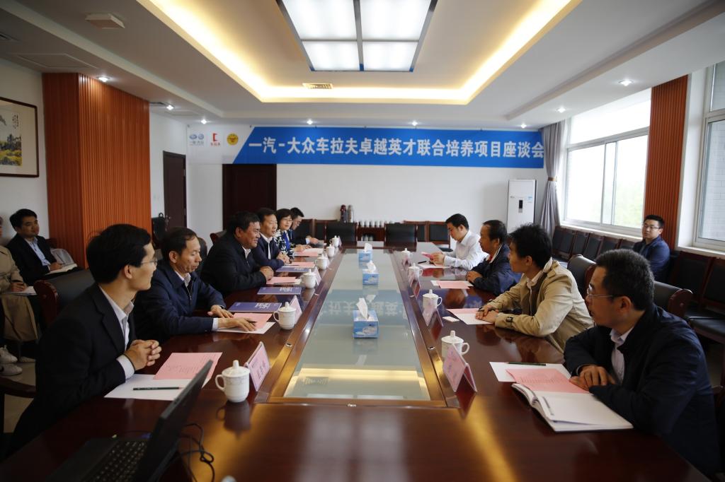 5月11日上午,一汽大众车拉夫卓越英才联合培养项目组专家一汽大众汽车销售有限公司培训部部长许建华、广州车拉夫汽车科技有限公司CEO孙伟、广州车拉夫汽车科技有限公司大区经理喻学斌、一汽大众卓越英才校企合作组山东区经理刘波一行4人到公司洽谈交流项目合作事宜,公司经理王家爱、副经理贺志强、李瑞昌,科技处、Bevictor伟德官网主要负责人及部分骨干教师参加了洽谈会。
