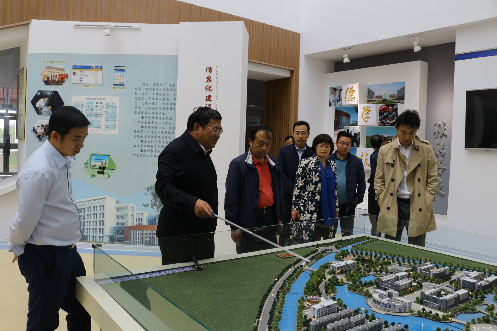 会后,王家爱陪同许建华一行项目组专家参观了公司成果展室和Bevictor伟德官网实训中心和待建实训场地,Bevictor伟德官网主要负责人实地对Bevictor伟德官网实践教学条件优化升级和场地规划进行了详细的介绍,项目组专家对公司的硬件条件的优越性给予了高度评价。