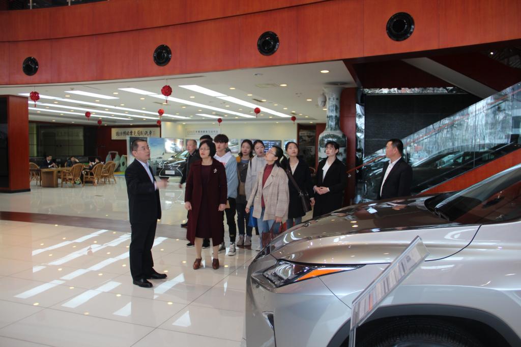 潍坊博瑞雷克萨斯汽车销售服务有限公司是潍坊唯一雷克萨斯品牌汽车销售服务公司,公司总投资近2亿元。杜经理及相关老师、员工在潍坊博瑞雷克萨斯汽车销售服务有限公司董事长杨学亭、总经理赵明华等公司领导的陪同下,参观了公司汽车营销展厅、机修车间、钣喷车间、顾客休息娱乐室,参观过程中,老师、同学对知名品牌汽车公司的理念、产品、服务进行了深入了解。